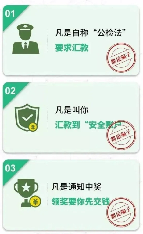 隨著網(wǎng)絡(luò)的飛速發(fā)展,電信詐騙案件頻頻發(fā)生,詐騙手段花樣百出,令人防不勝防。為提高大家的“反詐防詐”安全意識(shí),請(qǐng)認(rèn)真閱讀學(xué)習(xí)以下相關(guān)內(nèi)容,在生活中擦亮眼睛,提高防范意識(shí)和自我保護(hù)!